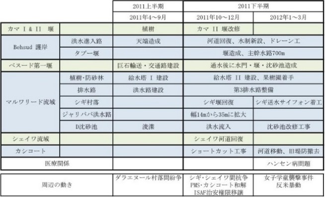 10年9月に立てた計画は以下の通りで、マルワリード取水堰だけを除き、11年度末までに予定工事を全て完了した。