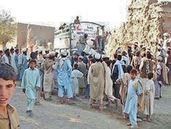 アフガニスタンでの食糧配給風景(2001年10月) |