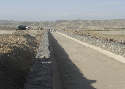 ガンベリ沙漠横断路(S区域)は6月27日現在、先端工事は3kmに達し、2.5km地点までを完成しました。しかし、ここ数日、熱風が激しく、時に50℃に達します。崖沿いの難関Q区域は、一応水が流れることを確認して漏水対策に入りました。