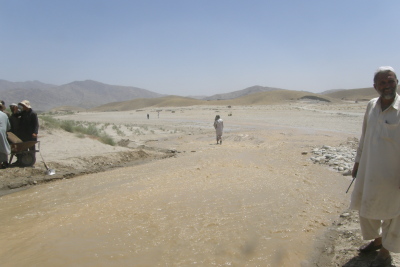 8月3日、アフガン時間12:10(日本時間16:40)、マルワリード用水路はガンベリ沙漠末端に到着、自然土石流の谷に落ちました。翌朝から、シギ村下流域の水不足も解消します。何枚か写真を送ります。