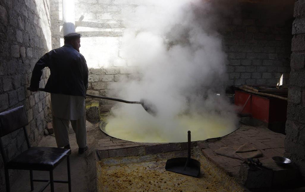 初めての製品ができた時、誰もかれもが躍り上って、尋常な喜び方でなかったことにも驚きました。特に年配の者がそうでした。聞くと、二十年ほど前まで、ナンガラハル州は黒砂糖の一大産地だったそうです。落花生やクルミと混ぜ、祝い事や客に差し出す茶菓子として、子供に与えるご褒美として、深く生活に根ざしていました。それが近年次第になくなり、カマの一部の地域でしか採れなくなっていました。