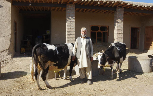 サトウキビ精製工場の傍にある牛舎。担当はソルフロド出身職員のモヘブッラー。アフガン人なら誰でも、農業ができ、家畜を飼える。皆根っからの農民なのだ。農業と農学は異なると、改めて思った。