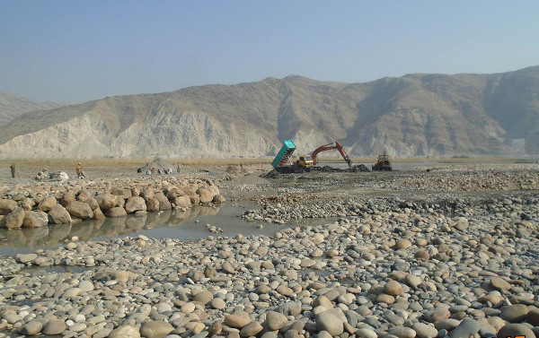弱い河床材料を大きな玉石で置き換え、巨礫を、埋め込むように張りつけていく。