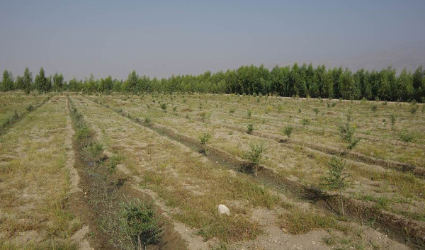 ガンベリ記念公園。噴水を設置して花園にするのが職員の夢で、造成が進められている。アフガン人が想像する「天国」のイメージがよく分かる。水と緑が安堵感 をもたらすのだ。数年後の「オレンジ会」開催を目指して、柑橘類の果樹園の拡大も精力的に行われている。2015年10月11日