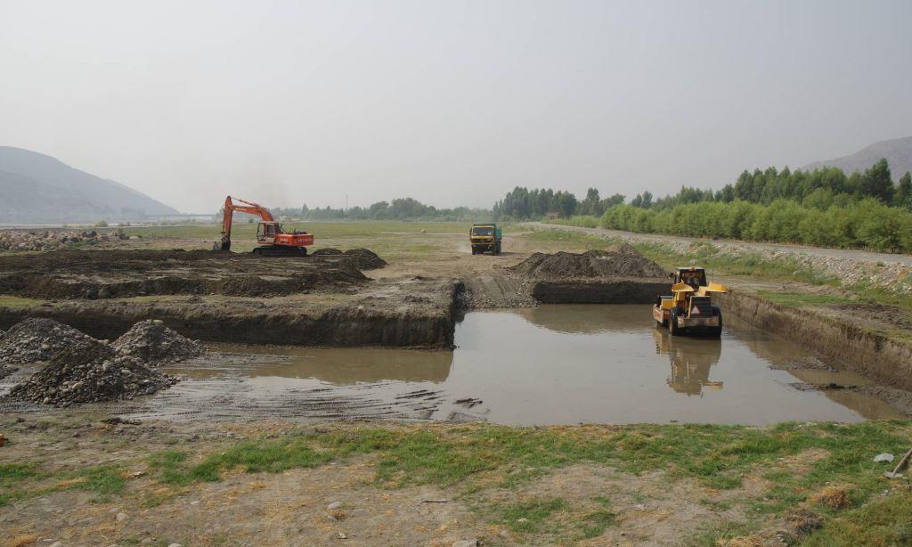 訓練所の建設。シルト層を約1.5mほど除くと、強靭な砂利層が現れる。今秋は河川工事に忙殺されるので、基礎だけきちんとして、上部は来年から本格化される。いずれ「緑の大地計画」の基地として大きな働きをする。2016年9月29日